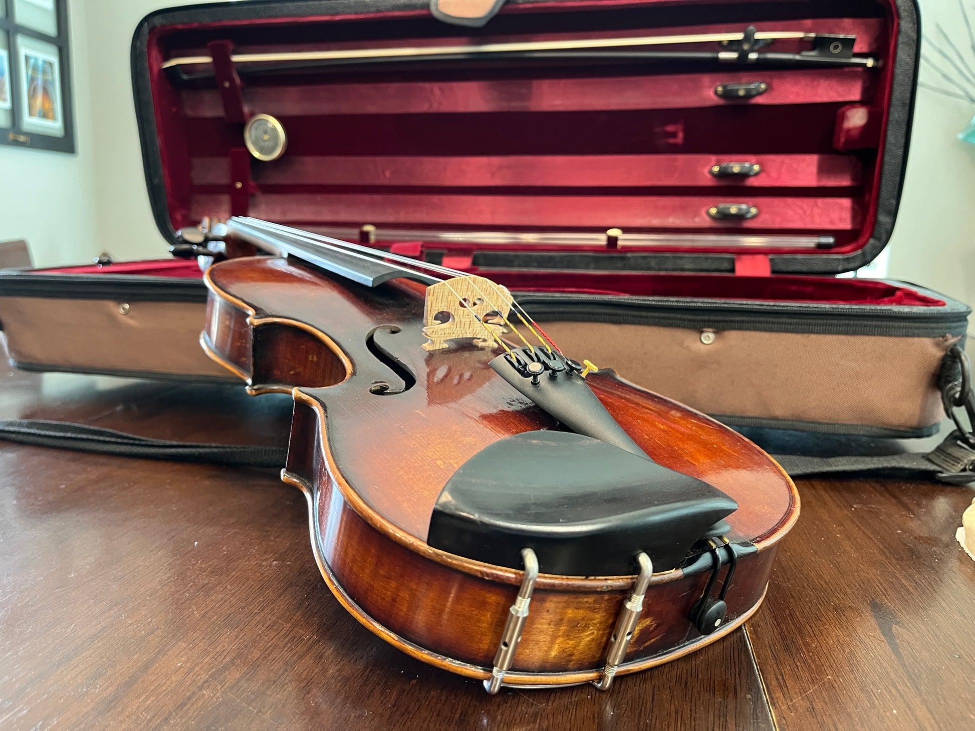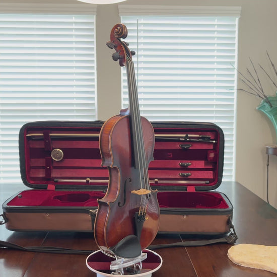 Why purchase new or rent when pre-owned sounds just as good! Did you know you can buy a quality pre-owned violin like this, and typically sell for the same price if kept in good condition? It’s like having a violin for free. You’re welcome to play prior to purchase. I’m happy to meet at a local music store in Burleson for a second opinion. We’re located in South Fort Worth, Texas. We look forward to meeting you! Shipping is protected, so if what you get, doesn’t meet the description you can send it back.