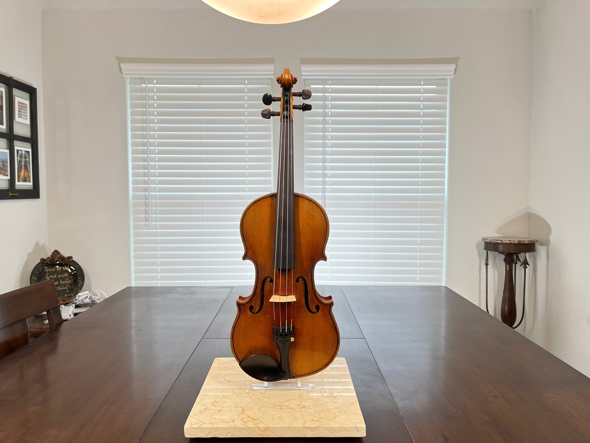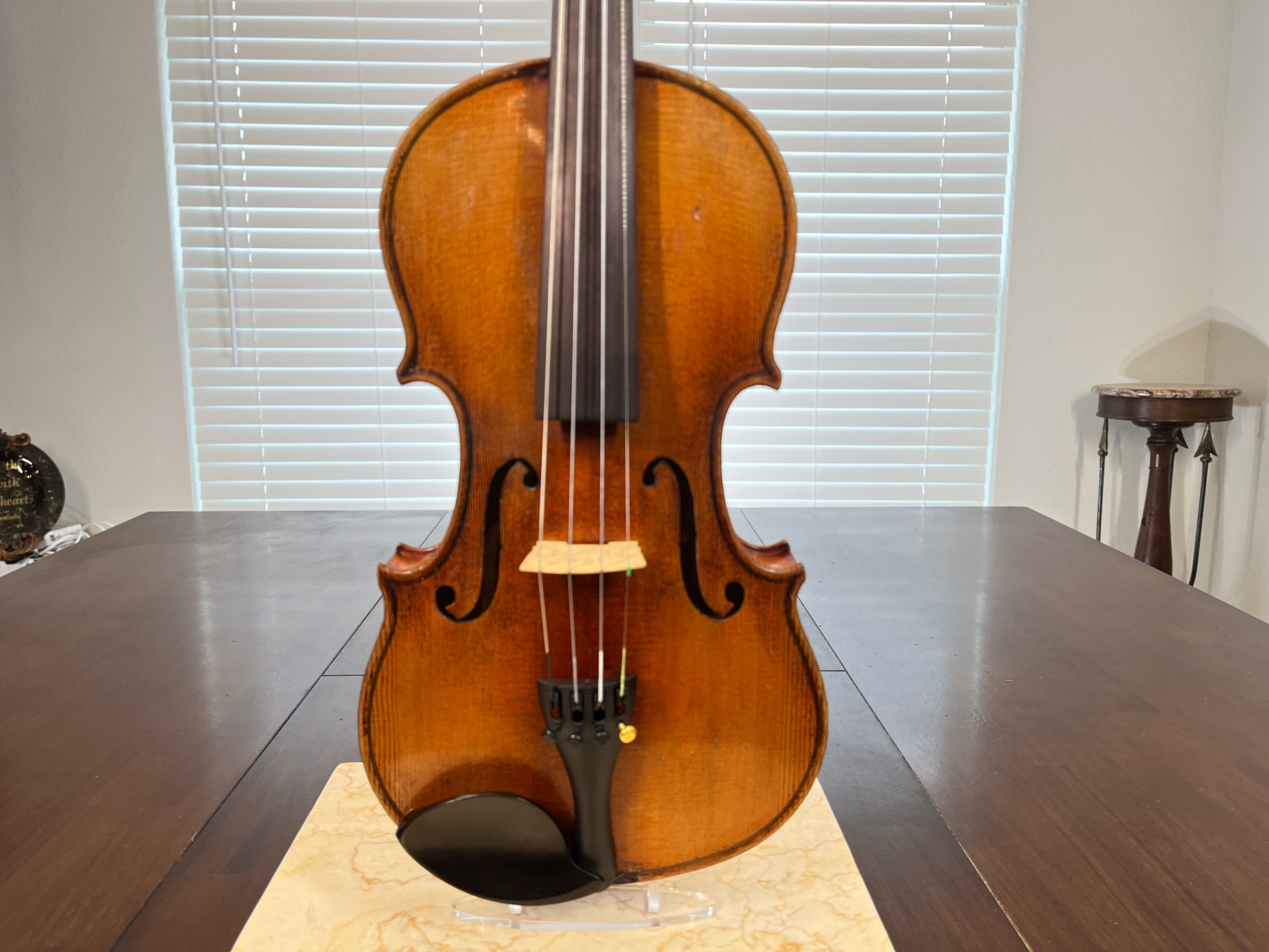 Why purchase new or rent when pre-owned sounds just as good! Did you know you can buy a quality pre-owned violin like this, and typically sell for the same price if kept in good condition? It’s like having a violin for free. You’re welcome to play prior to purchase. I’m happy to meet at a local music store in Burleson for a second opinion. We’re located in South Fort Worth, Texas. We look forward to meeting you! Shipping is protected, so if what you get, doesn’t meet the description you can send it back.