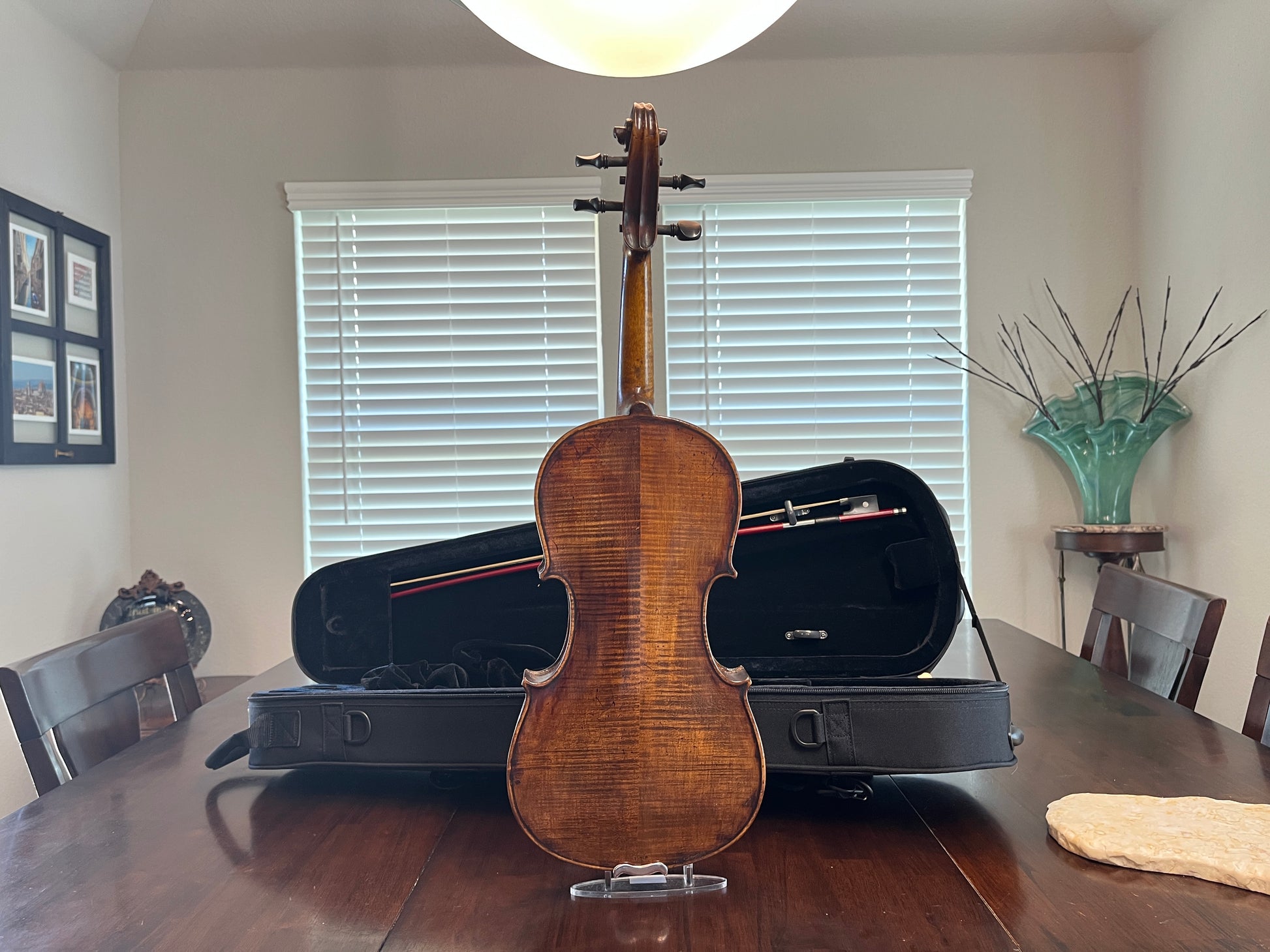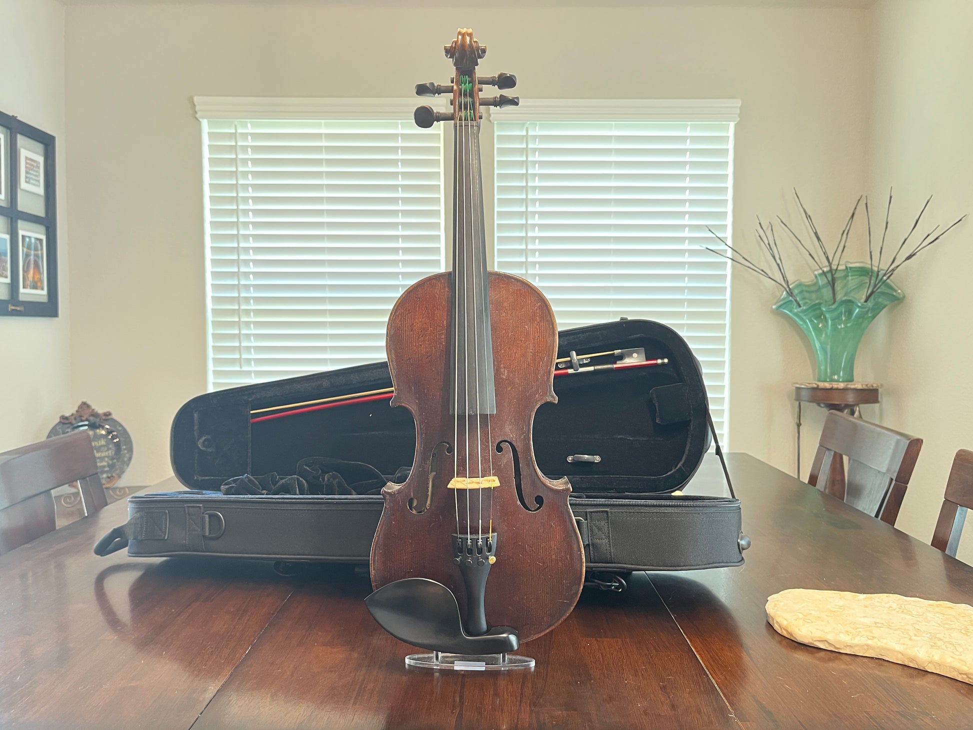 Why purchase or rent when pre-owned sounds just as good! Did you know you can buy a quality pre-owned violin like this, and typically sell for the same price if kept in good condition? It’s like having a violin for free. You’re welcome to play prior to purchase. I’m happy to meet at a local music store in Burleson for a second opinion.