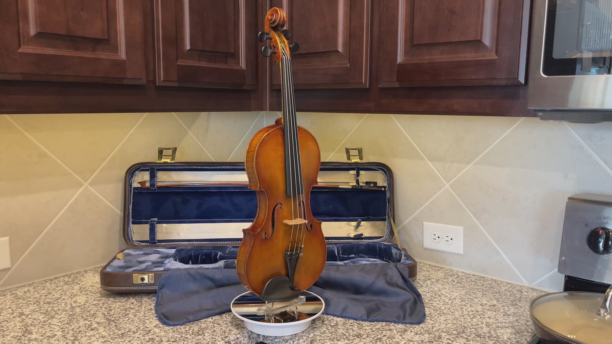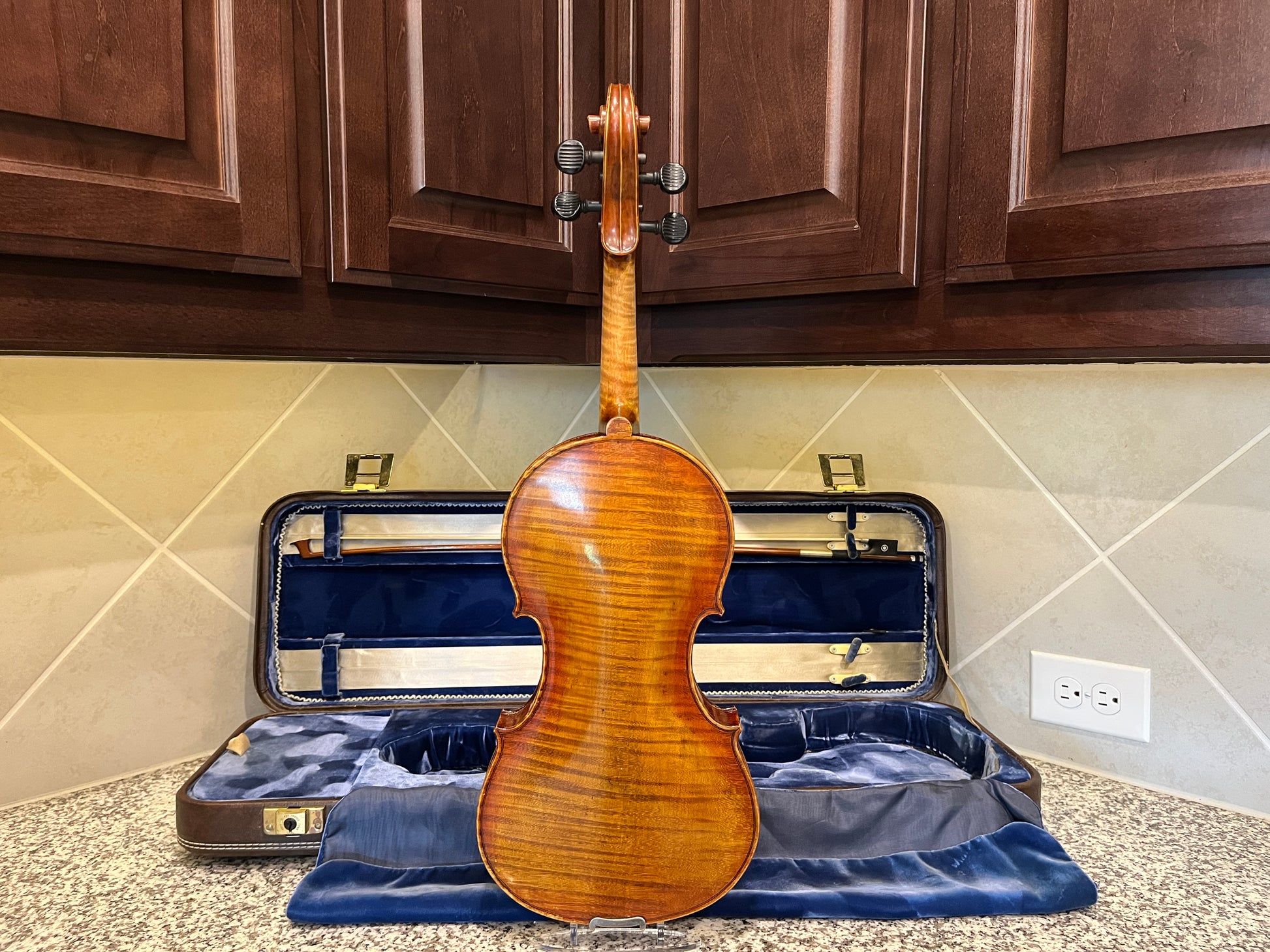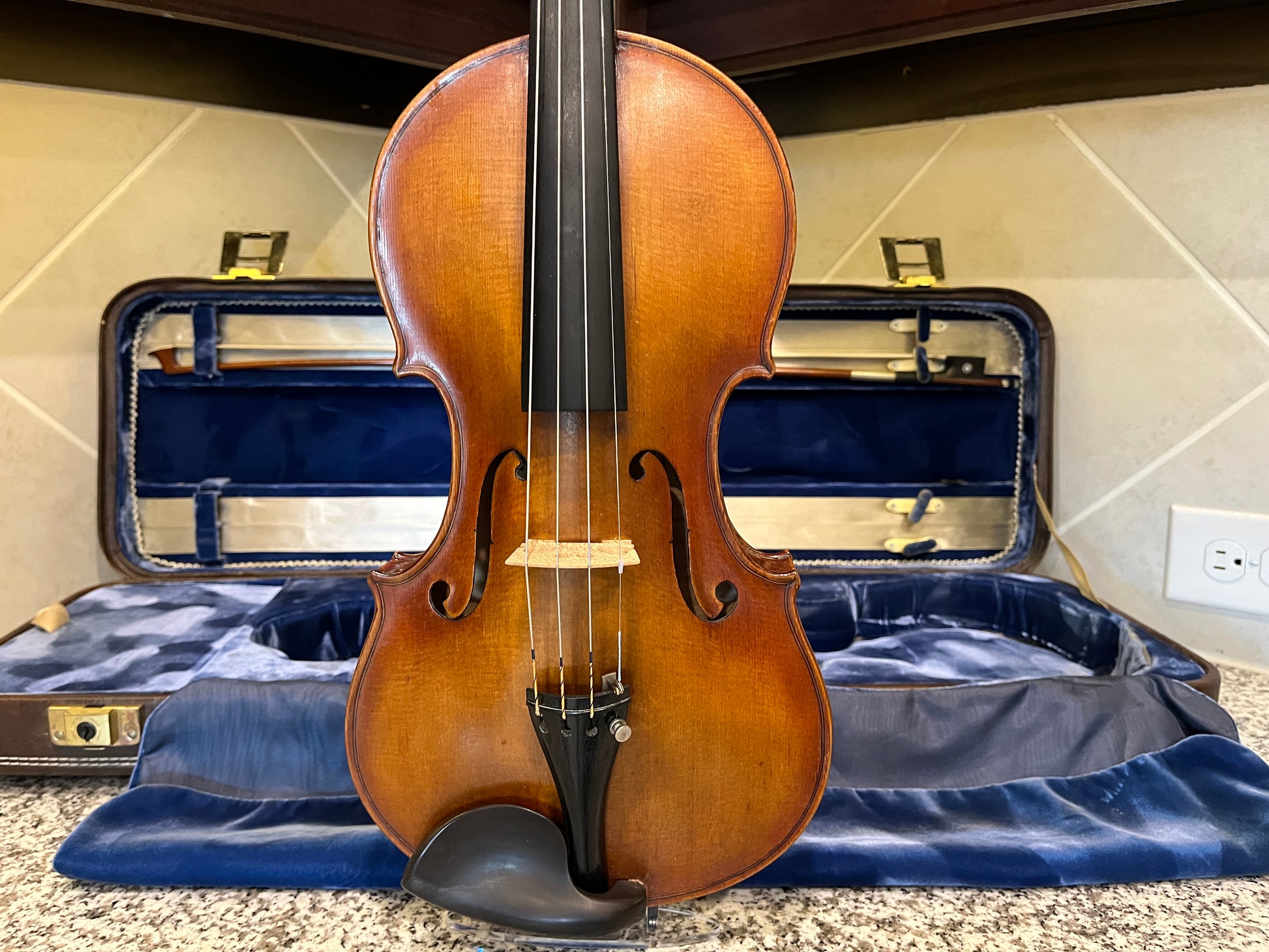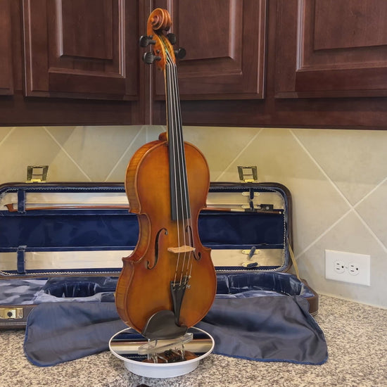Why purchase new or rent when pre-owned sounds just as good! Did you know you can buy a quality pre-owned violin like this, and typically sell for the same price if kept in good condition? It’s like having a violin for free. You’re welcome to play prior to purchase. I’m happy to meet at a local music store in Burleson for a second opinion. We’re located in South Fort Worth, Texas. We look forward to meeting you! Shipping is protected, so if what you get, doesn’t meet the description you can send it back within 7 days of fully insured delivery.