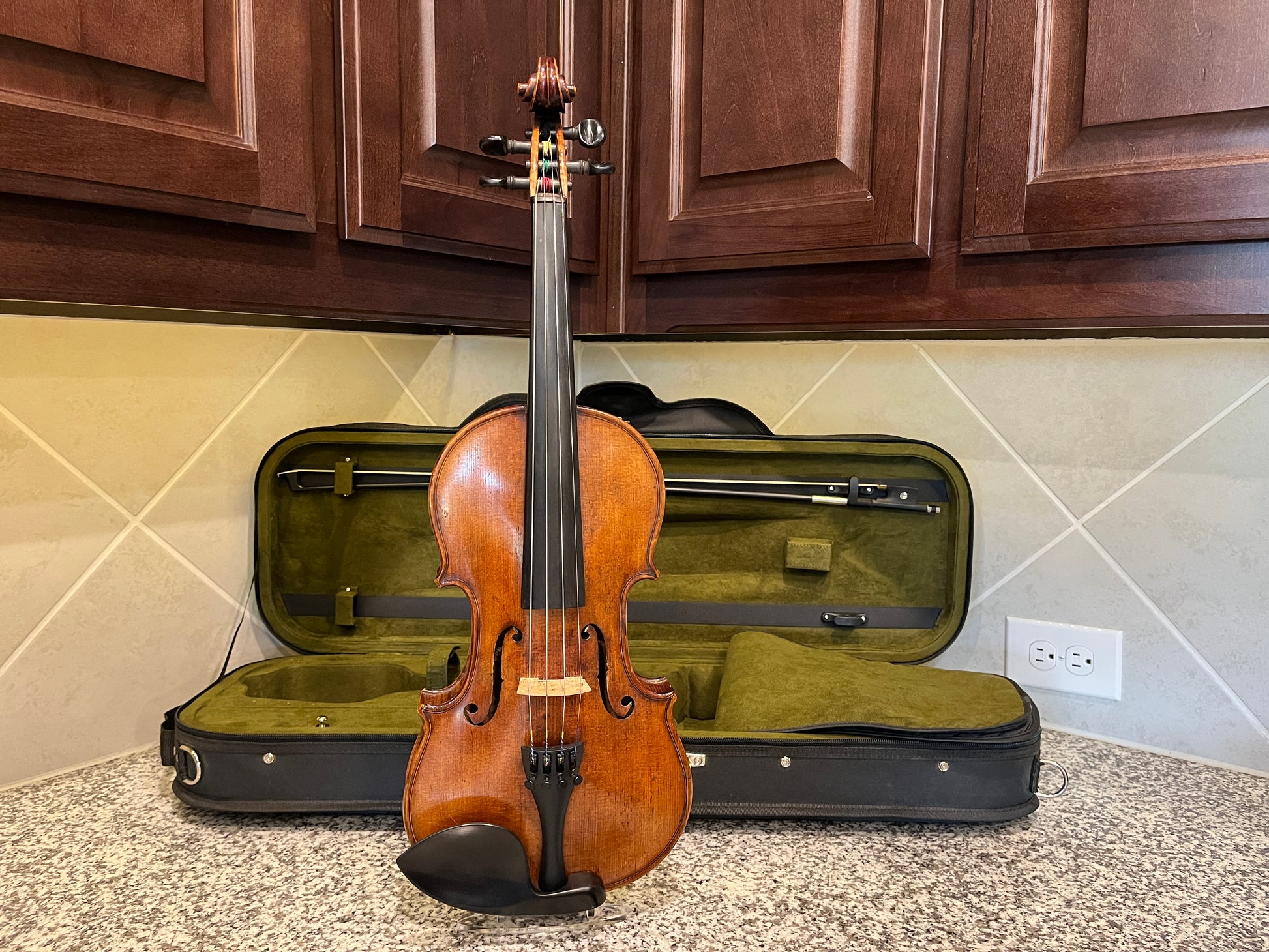 Why purchase new or rent when pre-owned sounds just as good! Did you know you can buy a quality pre-owned violin like this, and typically sell for the same price if kept in good condition? It’s like having a violin for free. You’re welcome to play prior to purchase. We're located in Greenwood Arkansas, close to Fort Smith. We look forward to meeting you! Shipping is protected, so if what you get, doesn’t meet the description you can send it back within 7 days of fully insured delivery.