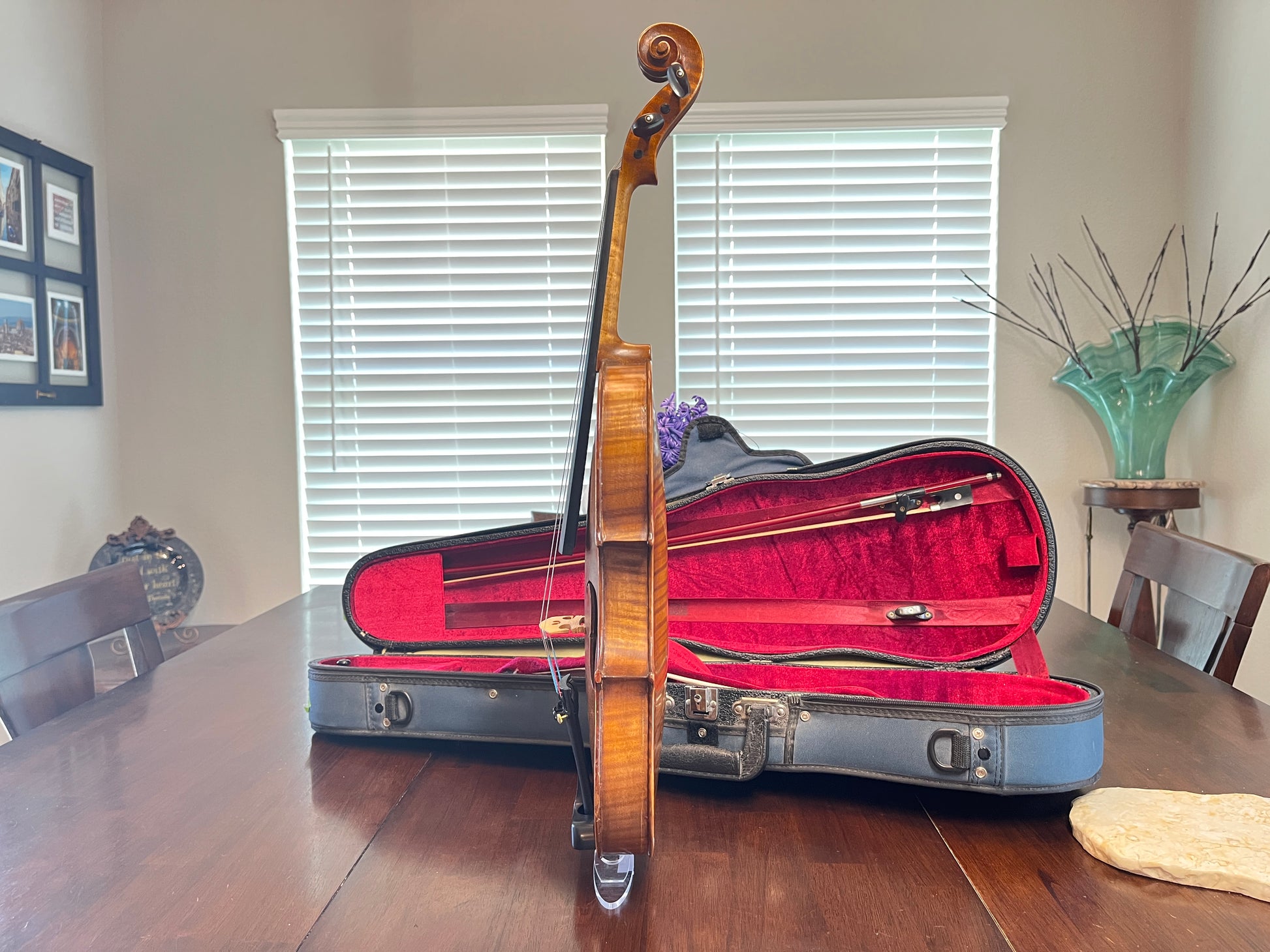 Why purchase or rent when pre-owned sounds just as good! Did you know you can buy a quality pre-owned violin like this, and typically sell for the same price if kept in good condition? It’s like having a violin for free. You’re welcome to play prior to purchase. We're located in Greenwood Arkansas, close to Fort Smith.