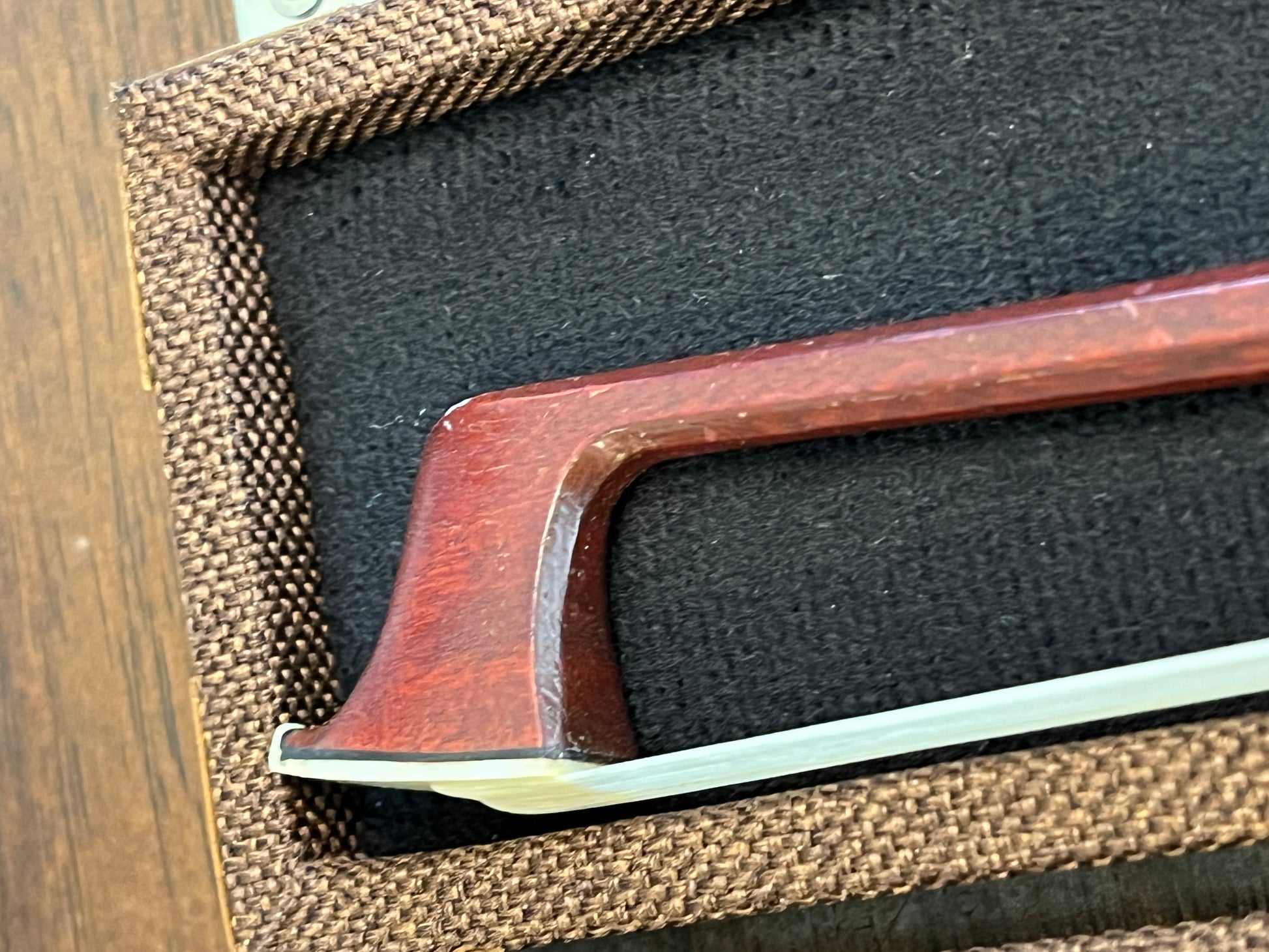 Stunning violin bow with stamped bow and frog.