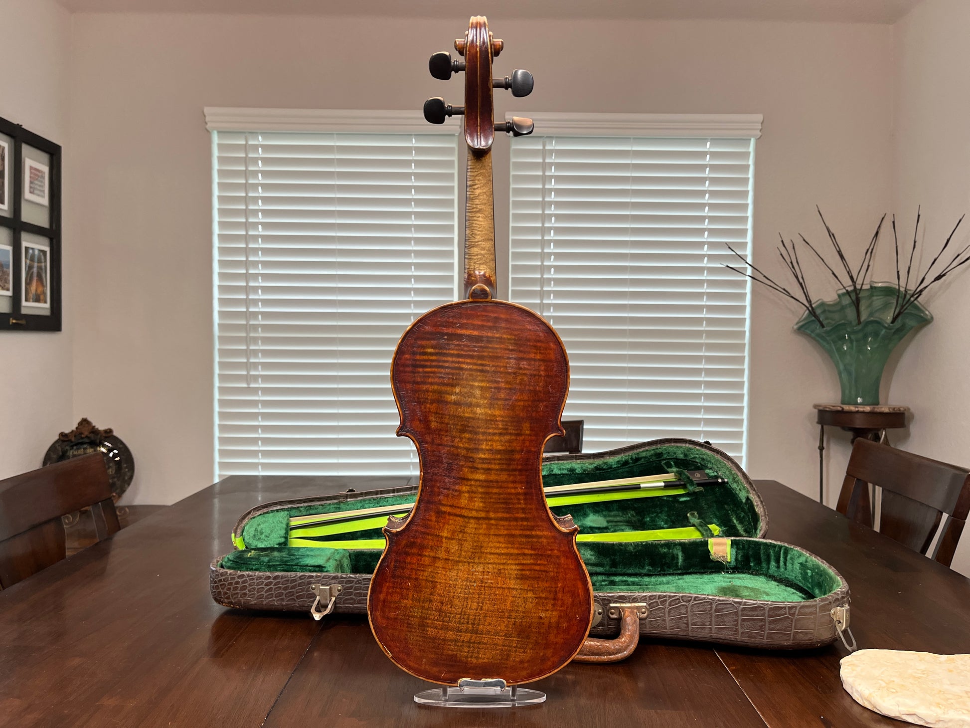 John Austin Wesco (J.A. Wesco) violin 1901 - complete with a curved bass bar. It shockingly sounds amazing. This violin was restored to keep the violin as original as possible.