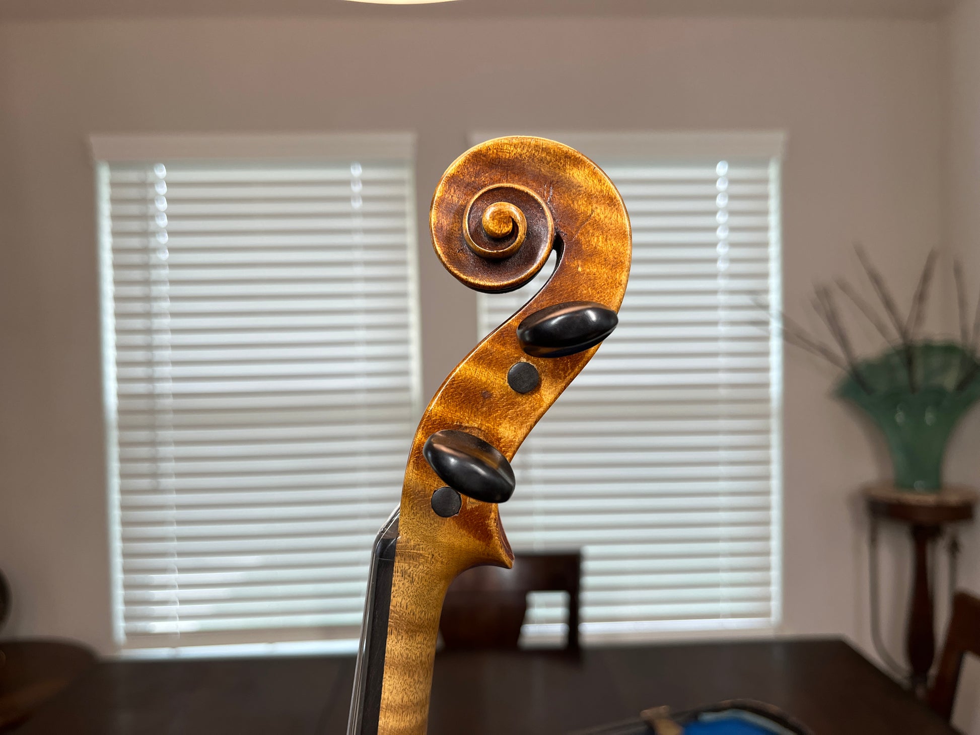 This resonant violin has a beautiful color and full of vintage seasoned sound.