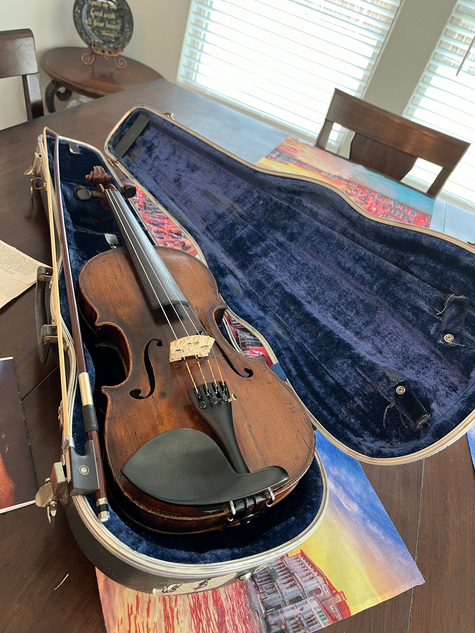 Why purchase new or rent when pre-owned sounds just as good! Did you know you can buy a quality pre-owned violin like this, and typically sell for the same price if kept in good condition? It’s like having a violin for free. You’re welcome to play prior to purchase. I’m happy to meet at a local music store in Burleson for a second opinion. Comes with everything needed to pick up and head to practice or performance, it even comes with rosin. We’re located in South Fort Worth, Texas. We look forward to meeting you!