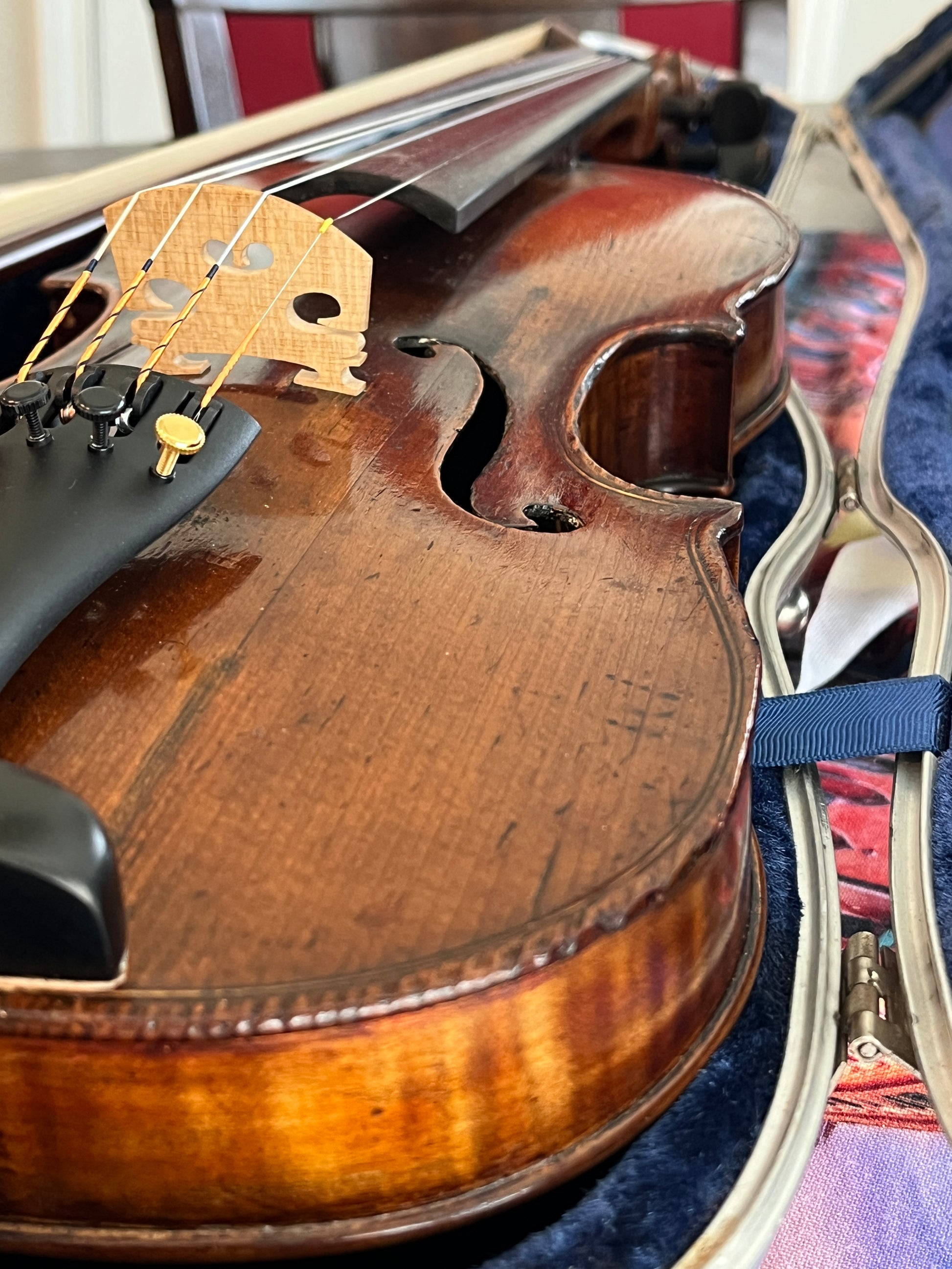 John poured himself into learning and restoring violins during the pandemic. He became certified in violin repair through the Iris Carr restoration course. In addition, he's shared bench time with a local violin maker and restorer, as well as enjoyed coaching sessions from other violin makers and professionals.