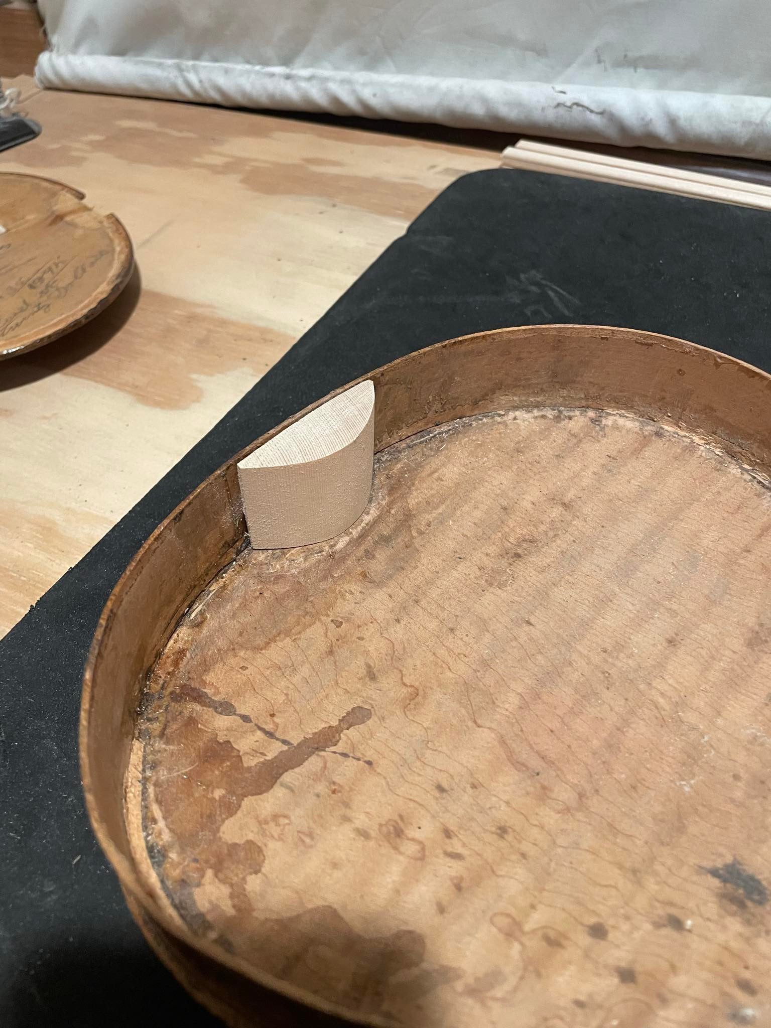 Corner blocks added, a proper bass bar, new bottom block, and touchup.